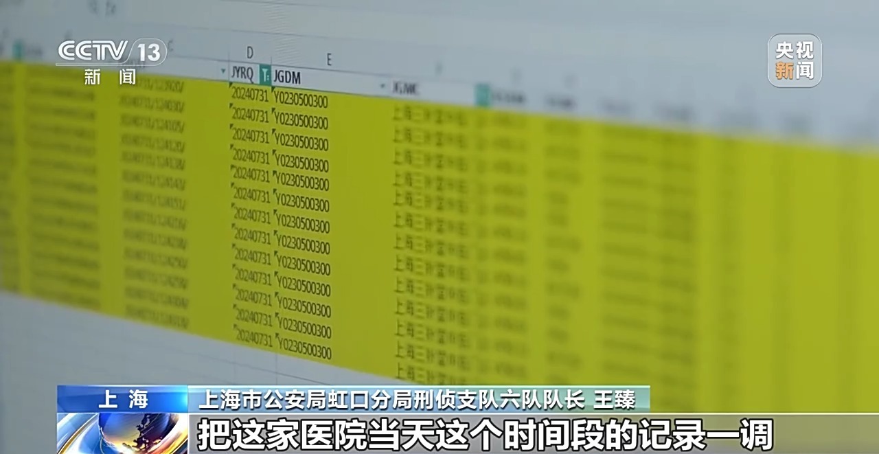 上海市公安局虹口分局刑侦支队六队队长 王臻:因为我们眼睛看到的是3个人进去挂号,那按照道理来讲,你这个时间段应该只有3个人进行挂号,进行就诊,进行配药。我们跟市医保局联系,把这家医院当天这个时间段的记录一调,发现当天有15个左右的这个参保人在里面有记录,远高于这个数字。