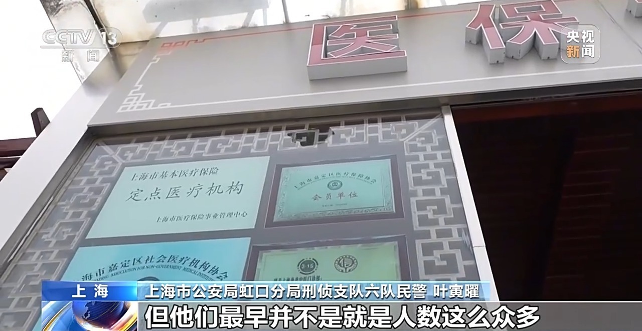 上海市公安局虹口分局刑侦支队六队民警 叶寅曜:逸养中医医院是从2021年开始,但他们最早并不是人数这么众多,只是比如说医院的股东,包括他们股东家属这方面的,自己的医保卡在里面空刷,到后面才发生就是叫老头老太太一起去刷这个行为。