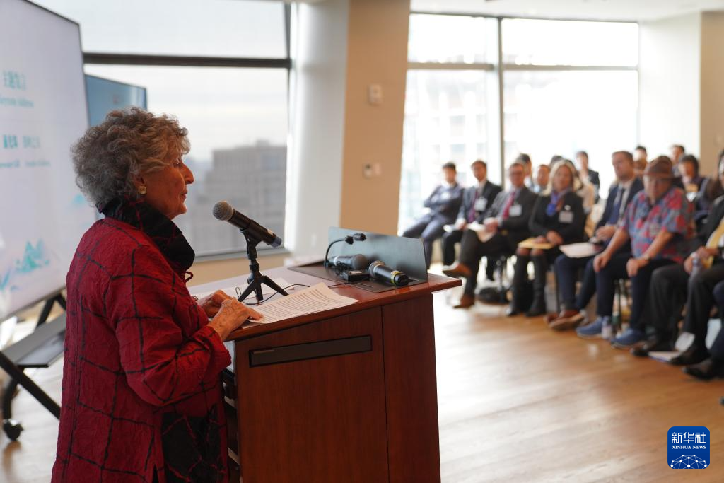 11月25日,在美国纽约举行的2025鼓岭论坛上,“鼓岭之友”蒲光珠分享自己家庭与鼓岭以及中国的故事。新华社记者张凤国摄